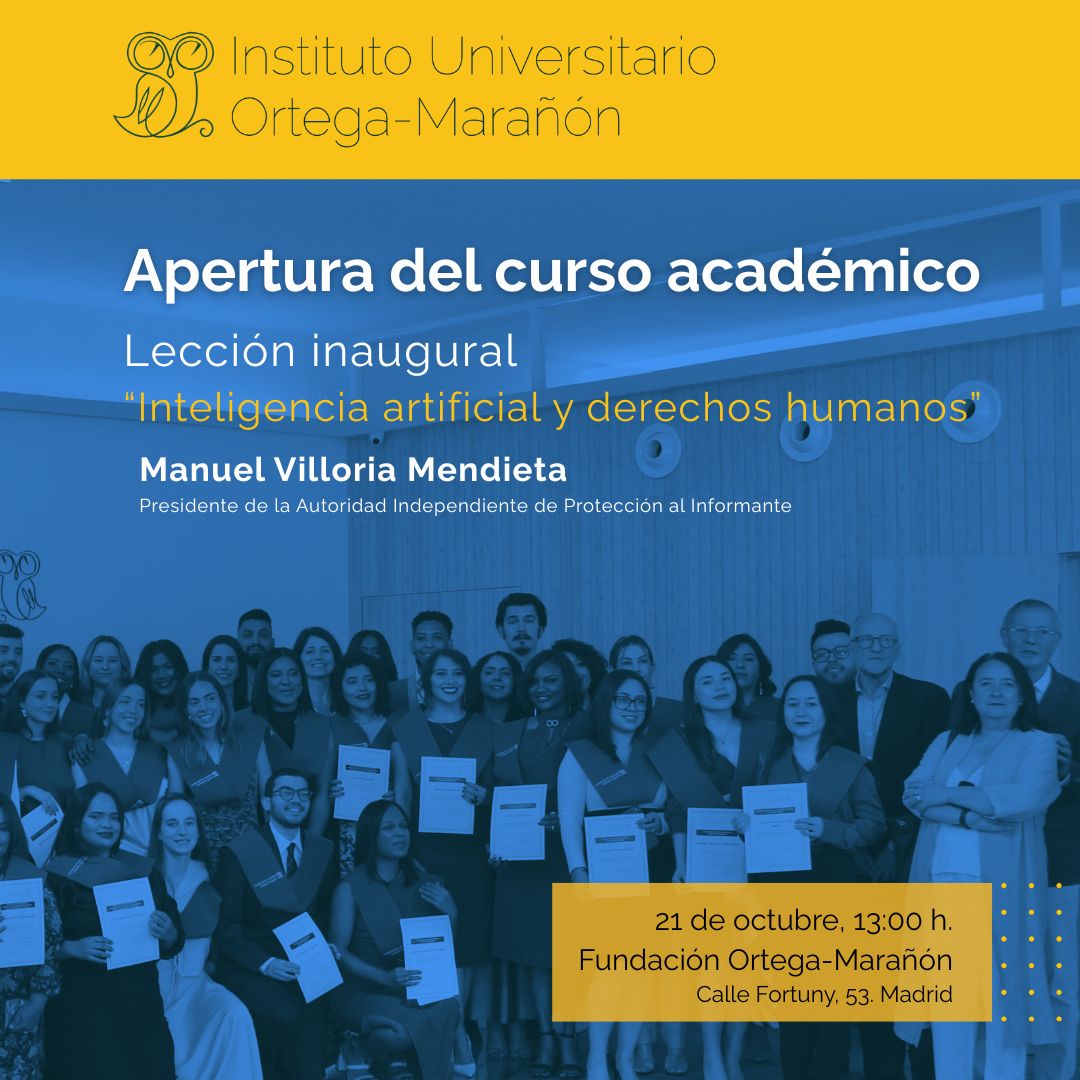 El Instituto Universitario de Investigación Ortega-Marañón celebrará el acto de apertura del curso académico 2025-2026. Como es tradición, el acto contará con una lección inaugural impartida por una figura destacada del ámbito académico y social. En esta ocasión, la lección correrá a cargo de Manuel Villoria Mendieta, catedrático de Ciencia Política y de la Administración en la Universidad Rey Juan Carlos y actual presidente de la Autoridad Independiente de Protección al Informante.