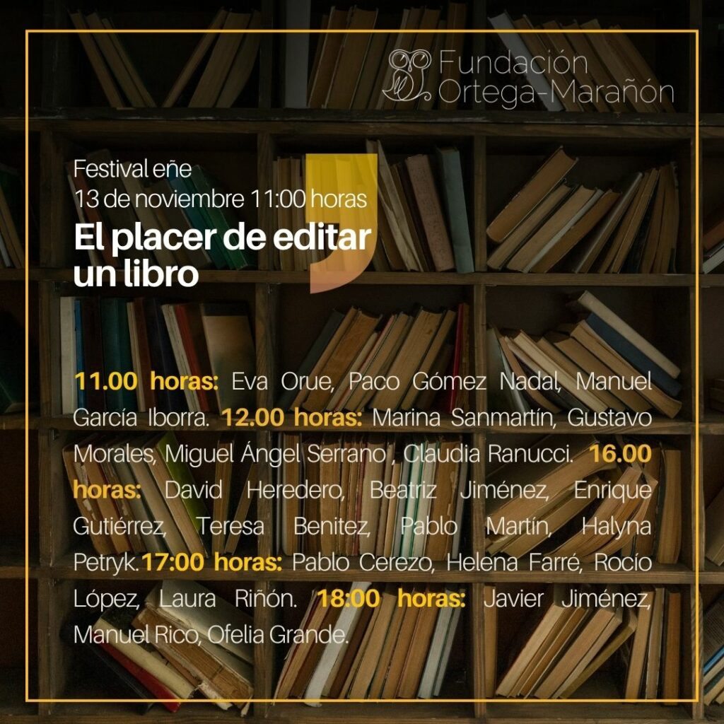 La Fundación Ortega-Marañón vuelve a ser sede del Festival Internacional de Literatura y Creación Eñe, una cita imprescindible con las letras y la cultura contemporánea. En esta edición, la Fundación acogerá la jornada «El placer de editar un libro», un encuentro que reunirá a destacados profesionales del mundo editorial para compartir su experiencia y reflexionar sobre los desafíos y las satisfacciones de este oficio.