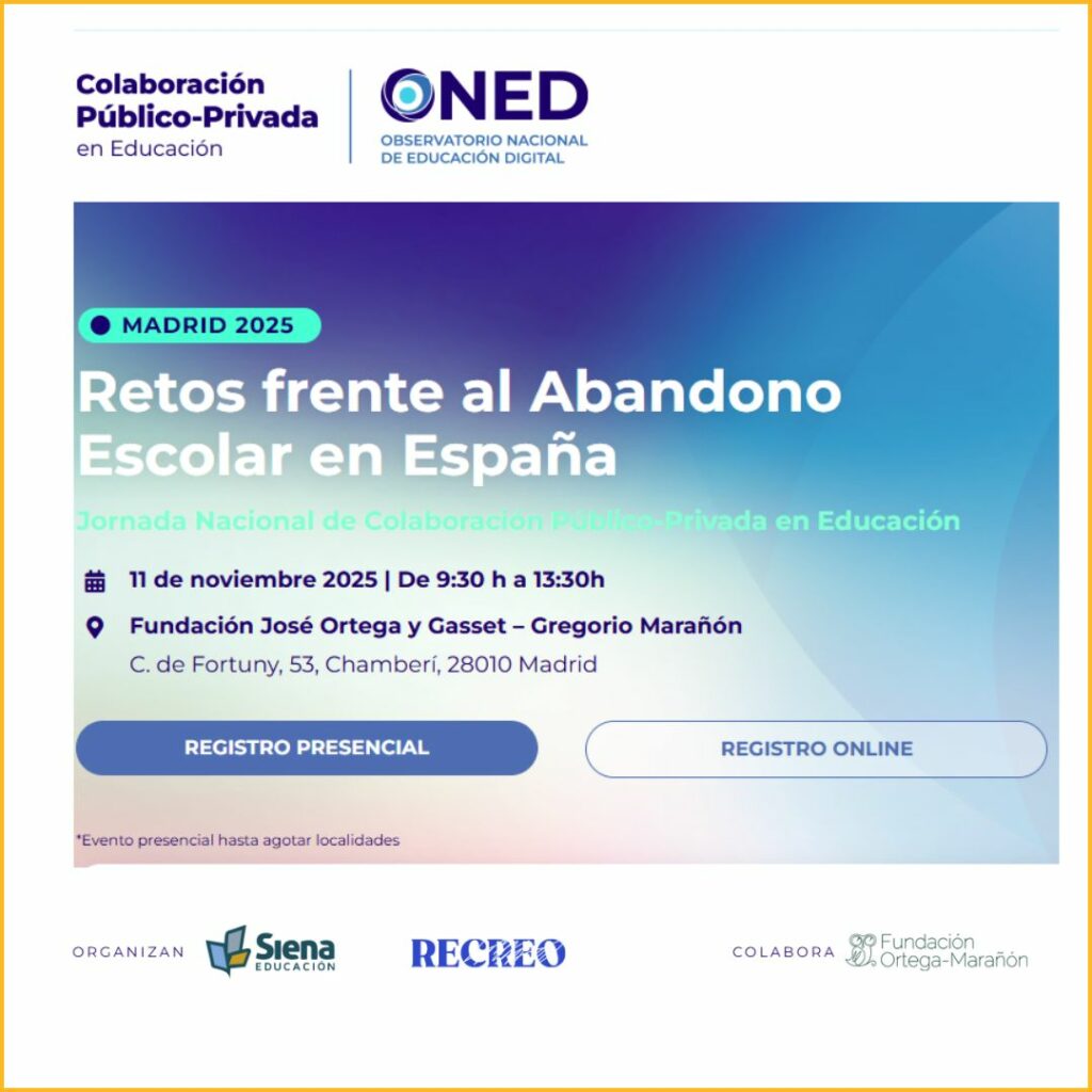 La Fundación Ortega-Marañón acoge la Jornada Nacional sobre Colaboración Público-Privada en Educación proomovida por Siena Educación, dedicada a analizar los desafíos del abandono escolar temprano en España. La sesión reunirá a representantes institucionales, entidades sociales y organizaciones educativas para reflexionar sobre el papel del pensamiento crítico, la inclusión y las alianzas estratégicas en la mejora de la permanencia escolar.