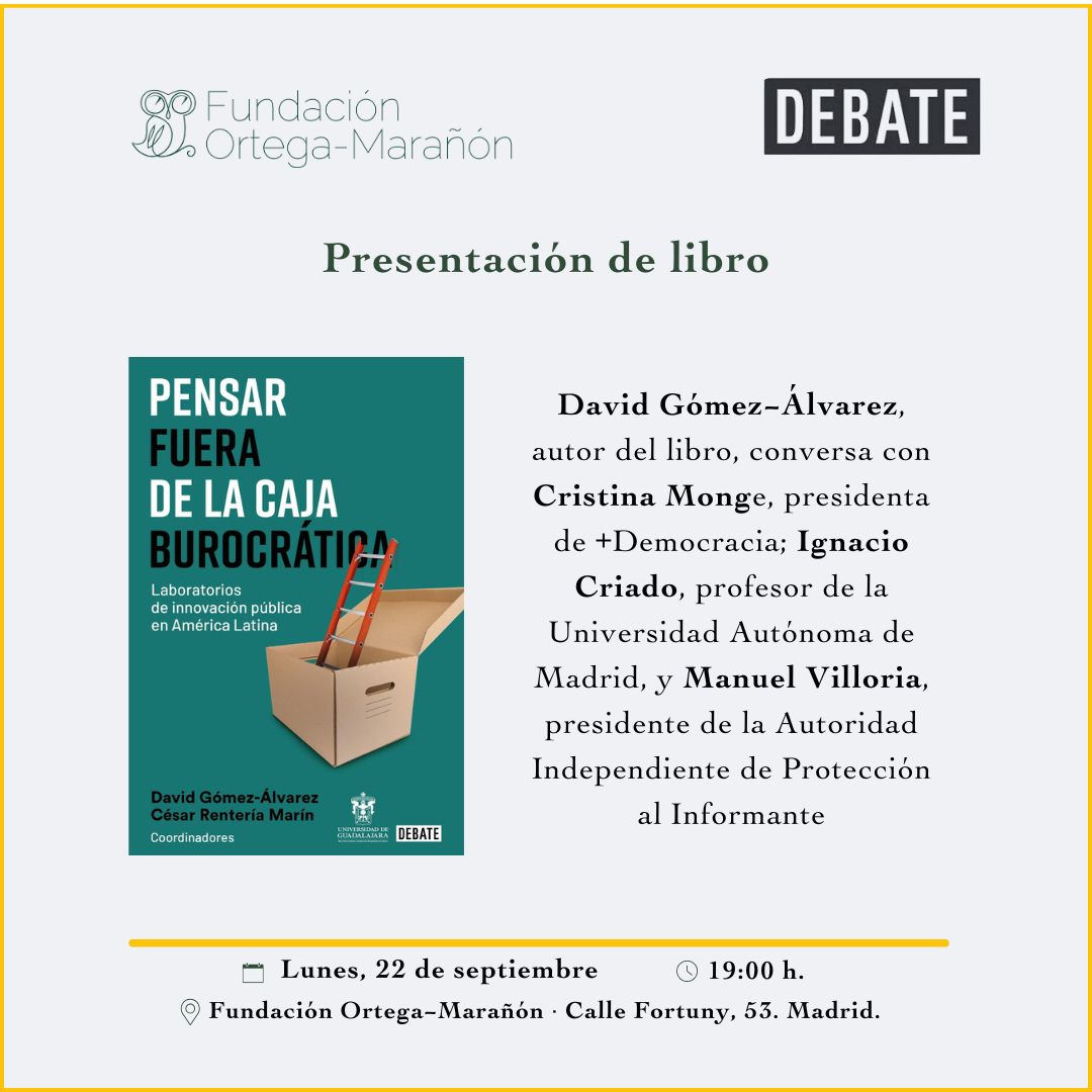 David Gómez-Álvarez, autor del libro, conversa con Cristina Monge, presidenta de +Democracia; Ignacio Criado, profesor de la Universidad Autónoma de Madrid, y Manuel Villoria, presidente de la Autoridad Independiente de Protección al Informante