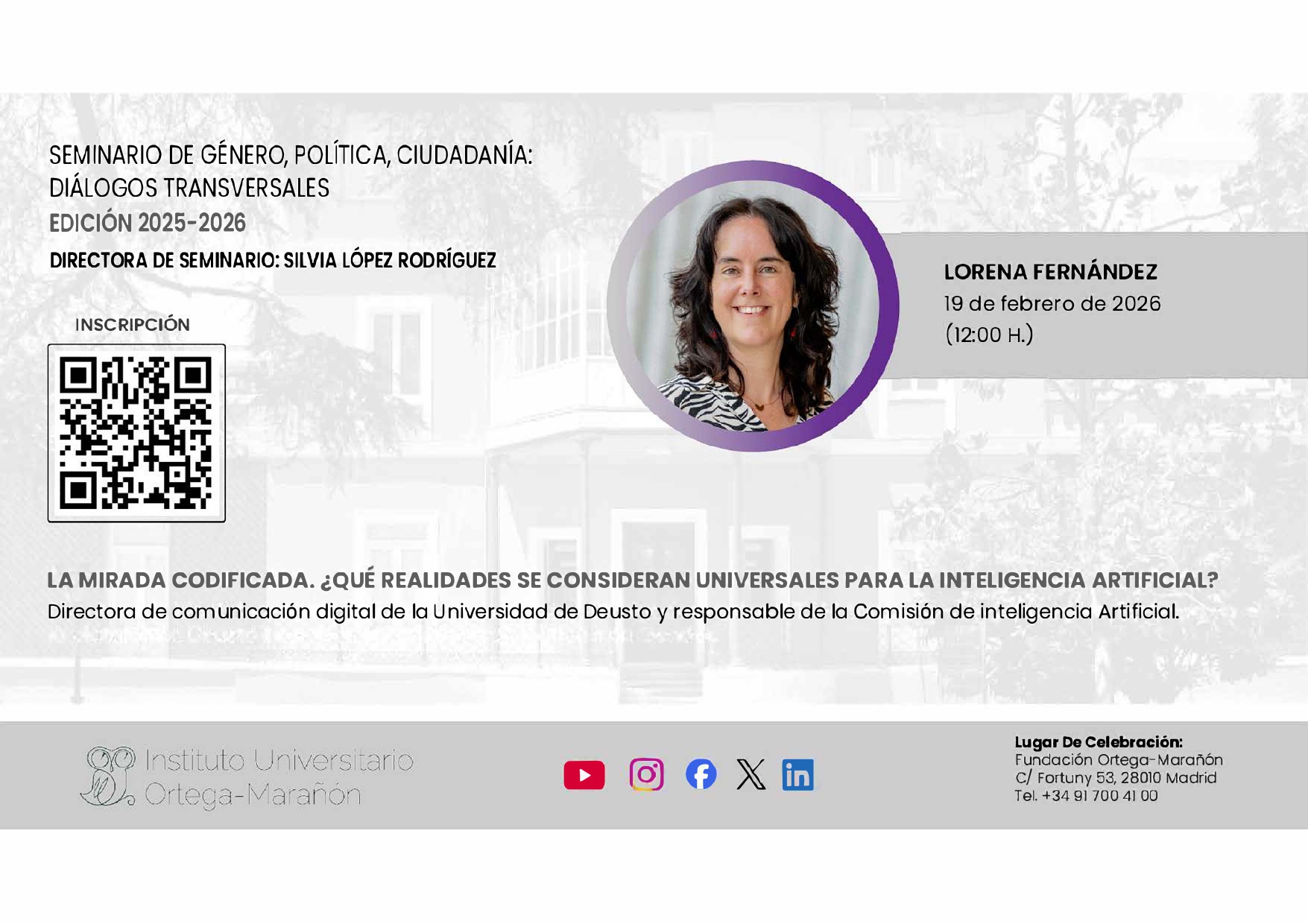El próximo 19 de febrero, a las 12:00 h, la Fundación Ortega-Marañón acoge una nueva sesión del Seminario Género, Política, Ciudadanía, titulada La mirada codificada. ¿Qué realidades se consideran universales para la Inteligencia Artificial?