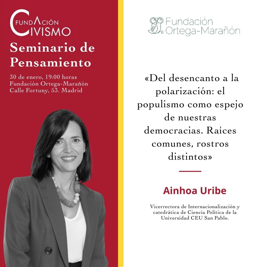 La Fundación Ortega-Marañón acoge la tercera edición del Seminario de Pensamiento «Del desencanto a la polarización: el populismo como espejo de nuestras democracias. Raíces comunes, rostros distintos», un espacio de reflexión dedicado a analizar los desafíos políticos y sociales de nuestro tiempo desde una perspectiva crítica y plural.