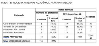 Alumnado: Las encuestas de satisfacción completadas por el 41,9% del alumnado sobre las asignaturas y el profesorado también arrojan una alta satisfacción, siendo la media global de una valoración de 8,9 sobre 10 puntos de puntuación máxima.