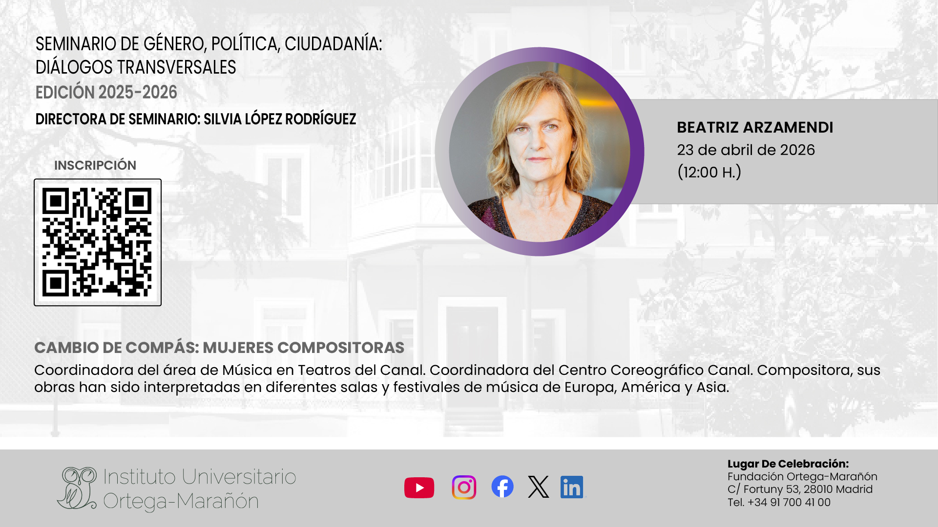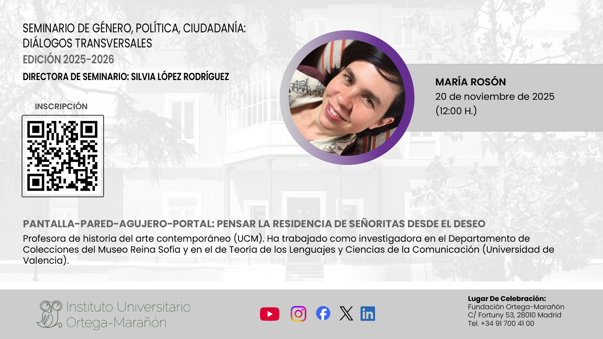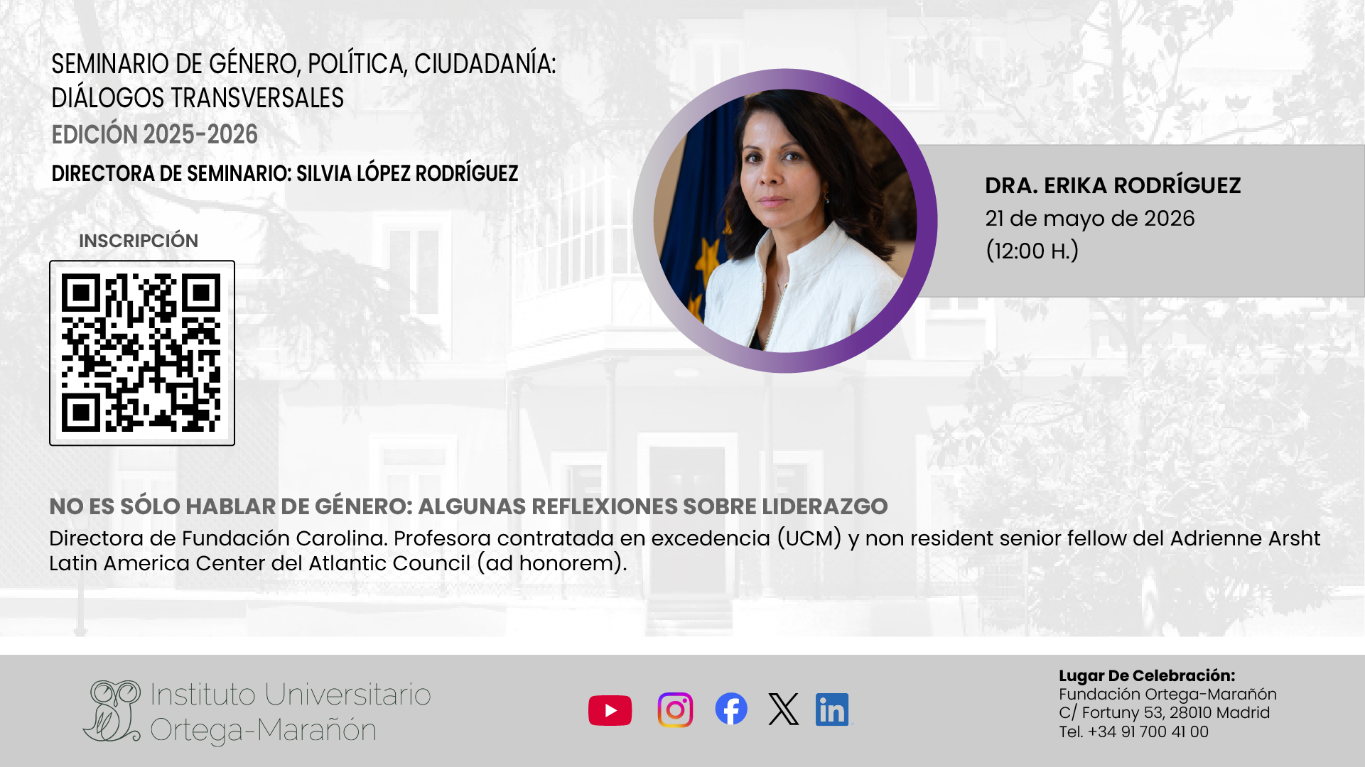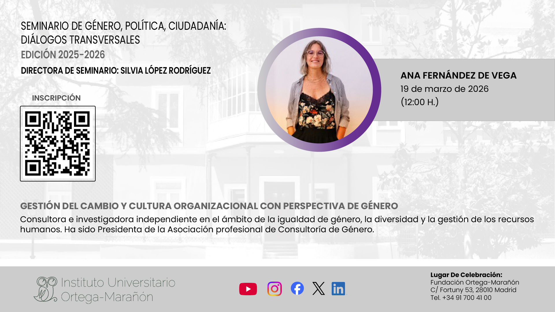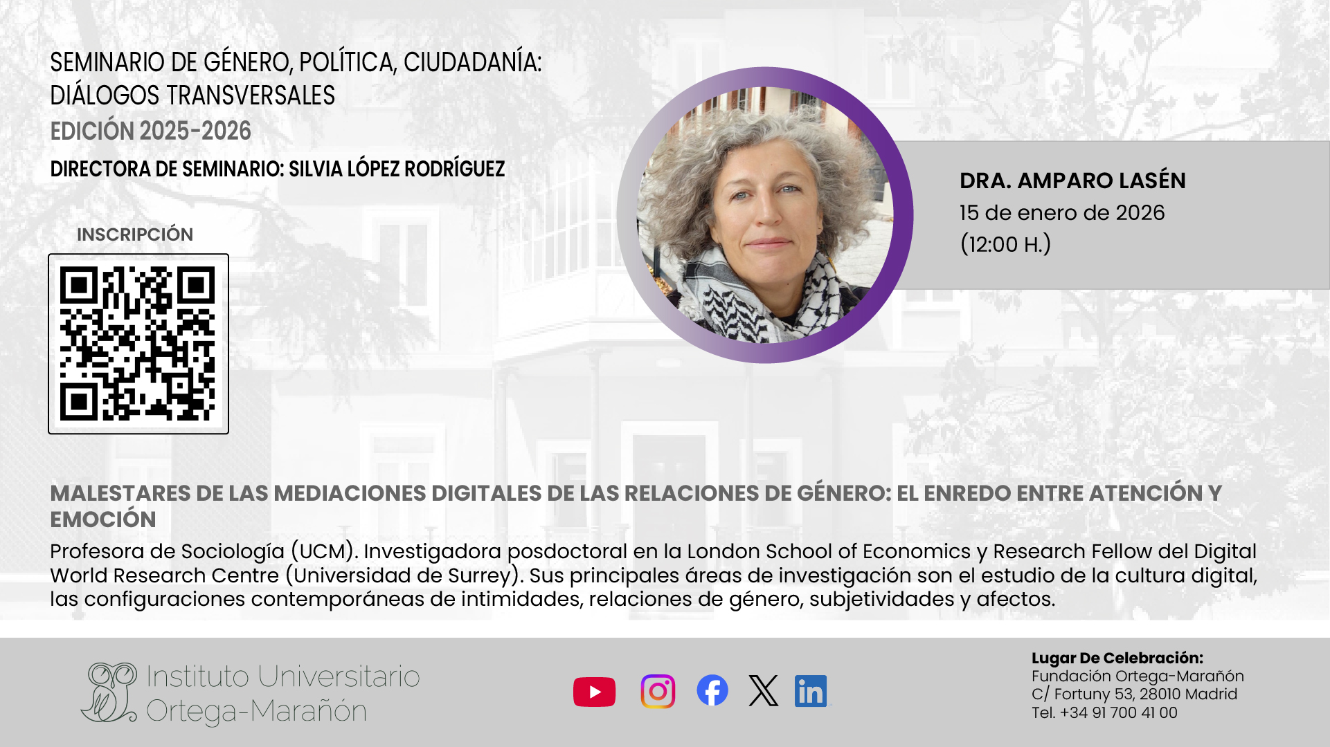 Con todo ello, se aspira a conformar un ciclo que sea de interés para el alumnado de los programas que acoge el IUIOM y para el público general, en el que se integre el enfoque de género como paradigma central para el análisis de nuestro tiempo presente y de los posibles retos de futuro.
