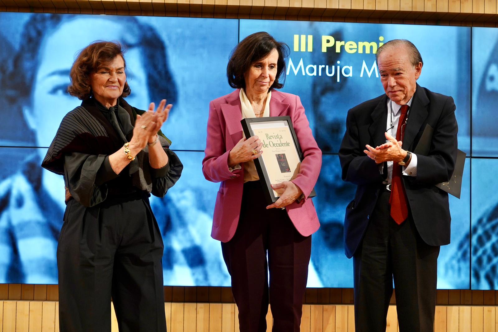 Fundadora del Círculo de Orellana, reconocida por su trabajo en la recuperación de figuras femeninas invisibilizadas y por su impulso a redes de liderazgo femenino en el ámbito cultural e institucional. Entregaron el premio: Yolanda Barcina, patrona de la Fundación, y Carmen Basagoiti, presidenta de Harmon Corporate Affairs, institución colaboradora de los Premios Maruja Mallo. -
