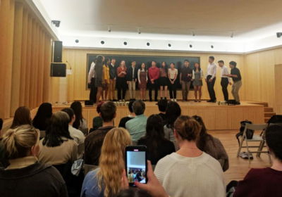 El Coro de la Universidad de Princeton «Roaring 20» actuó en la sede de la FOM para los alumnos de los programas internacionales
